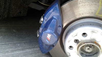 For people that want a little more bite out of their brakes BMW offers the M sport brakes. Genuine BMW brake caliper housing for the rear axle in blue with m logo. M-Sports are same size but offer the same calipers as the M-Performance brakes.